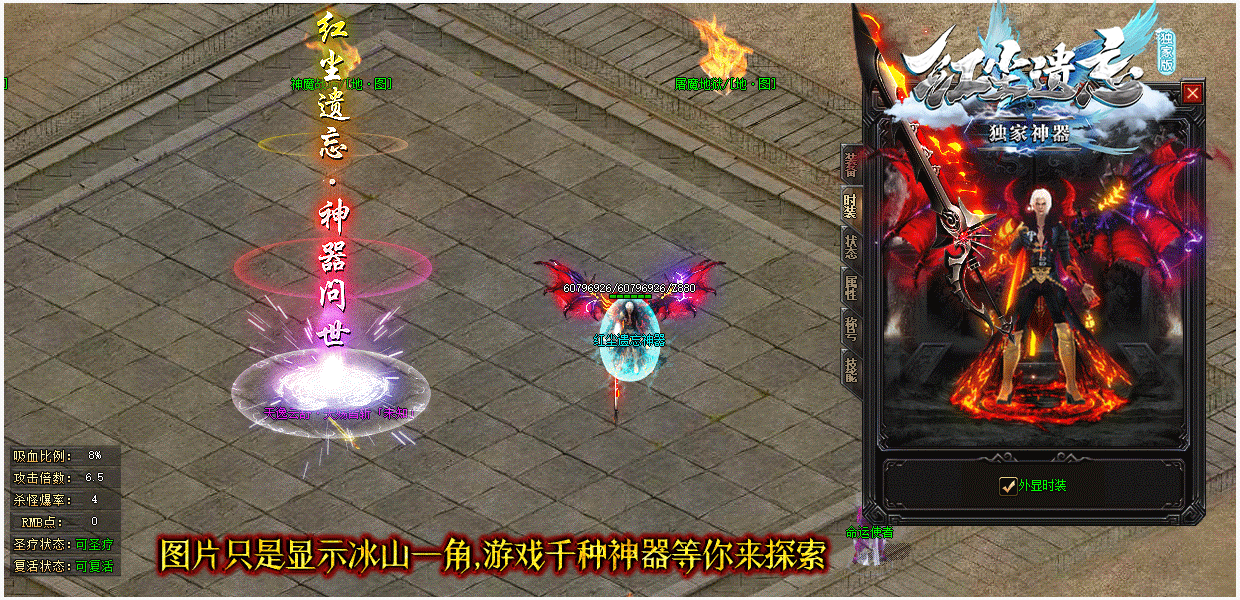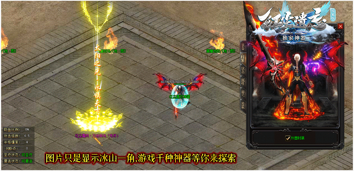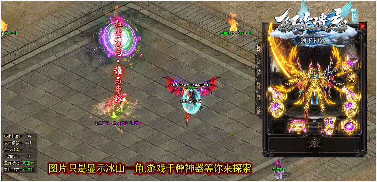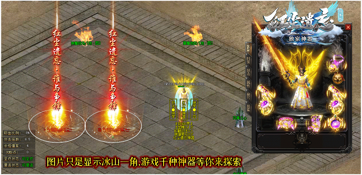 ★红尘遗忘★:上线送爆率-送切割-自动挂机-自动回收-一切靠打,无合成,看脸时代,你和土豪的差距只是【时间】